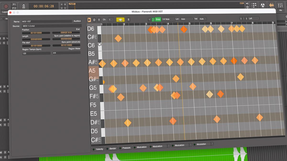 Master of MIDI with our dedicated MIDI “Piano Roll” window. Sequence drum grooves, quantize MIDI performances, and add emotion to virtual instruments with our intuitive MIDI editor. – A range of improved MIDI enhancements, including a refined Piano Roll building and new Clip Editor capabilities can be found in the latest Mixbus 11.1.