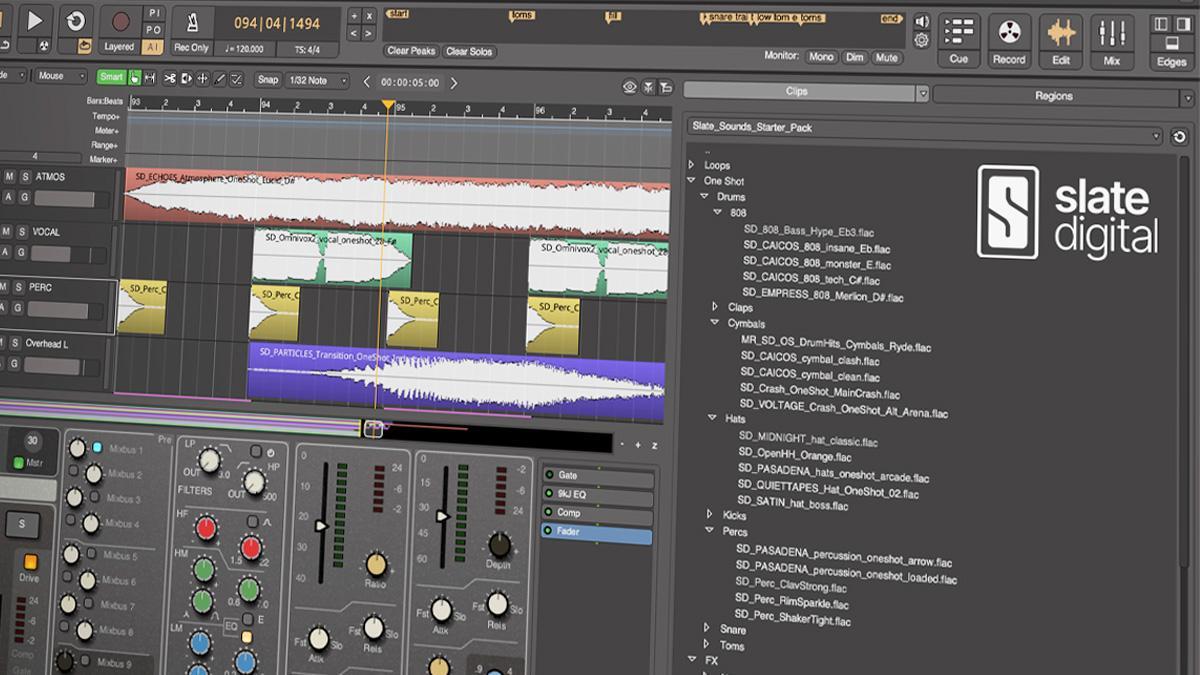 Now included with Mixbus 11.1, get access to Slate Digital’s ‘Slate Sounds Starter Pack’, featuring over 100 high-quality loops and samples. From punchy drums and deep bass to expressive guitars, lush keys, vibrant vocals, and inspiring song starters, this collection from the acclaimed Slate Sounds library is designed to kickstart your next production.